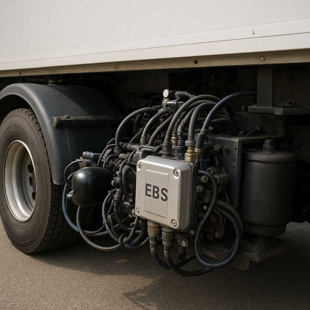 System EBS (Electronic Braking System) stanowi rozwinięcie tradycyjnych rozwiązań pneumatycznych wykorzystywanych w hamulcach naczep. W odróżnieniu od klasycznego układu, gdzie ciśnienie w przewodach powstaje bezpośrednio po naciśnięciu pedału hamulca, EBS korzysta z czujników i jednostki sterującej wysyłającej impulsy elektryczne do zaworów modulujących.